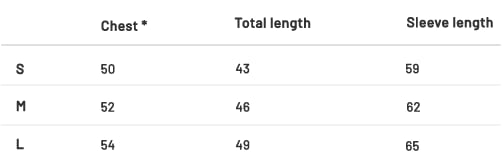 *Chest: Measurement from one underarm seam to the other.